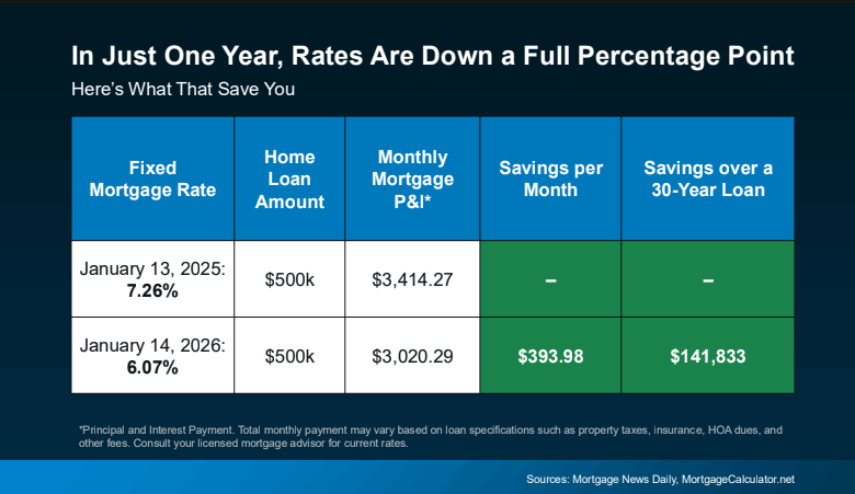 We’ve turned a major corner with mortgage rates. Over the last year, we’ve seen a full percentage point drop—moving from 7.26% in early 2025 to 6.07% by January 2026.